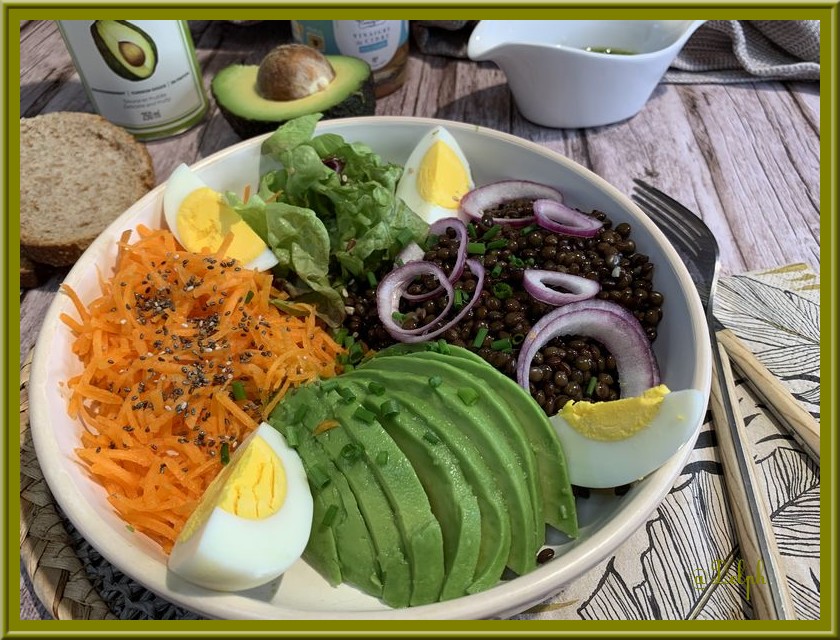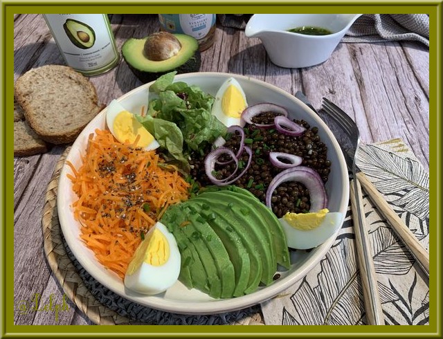 les lentilles, que de vitamines et ce bol est tout à fait gourmand. Je n’ai pas encore essayé l’huile d’avocat. Bisous