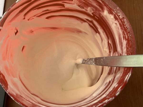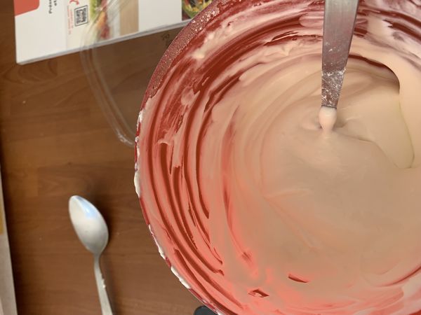 - Monter la crème en Chantilly. Incorporez-lui le fromage blanc et le sucre glace et battre de nouveau.