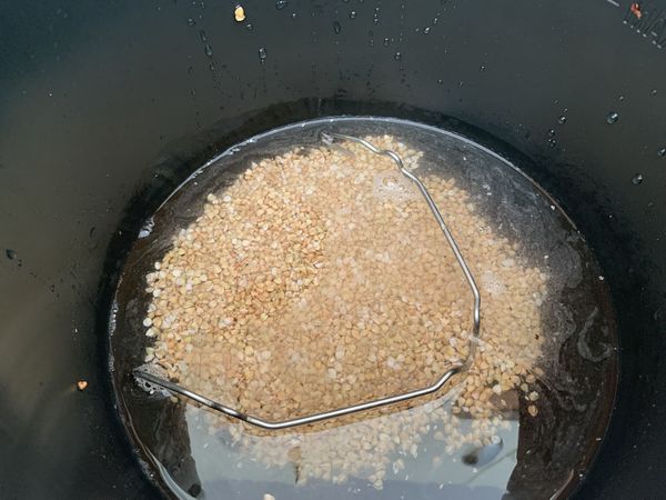- Pendant ce temps, rincer le sarrasin, remplir une casserole d’eau, saler légèrement et porter à ébullition, verser le sarrasin et laisser cuire 8 minutes, puis ajouter les haricots verts et poursuivre la cuisson environ 5 minutes.