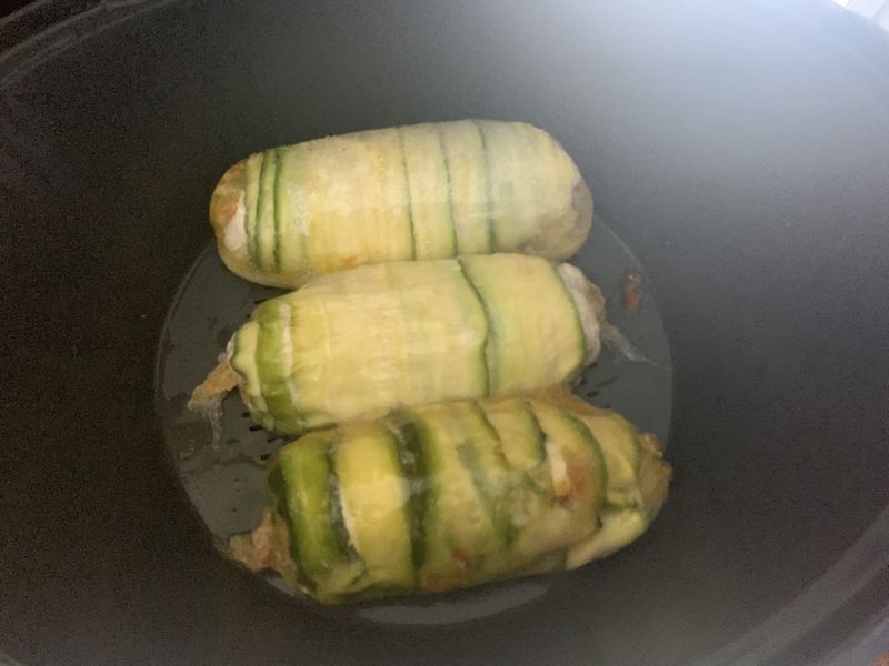 - Disposer dans le Varoma, les 3 roulés, verser 400 g d’eau dans le bol, mettre en place le Varoma , puis faire cuire 20 min/Varoma/vit2.