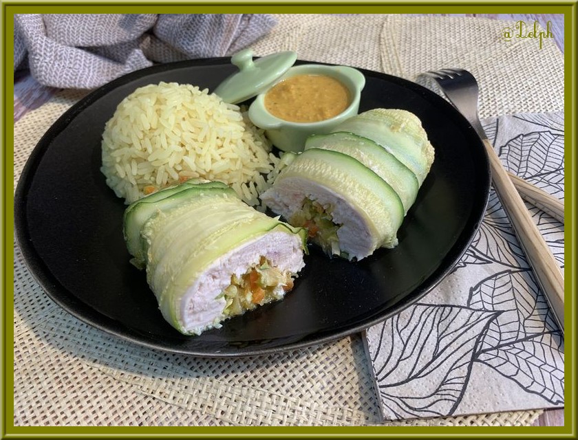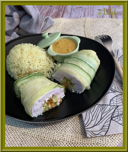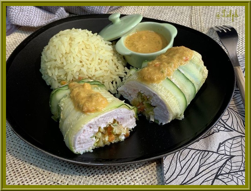 - Servir vos roulés de poulet avec le riz et napper de sauce.