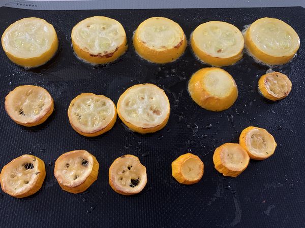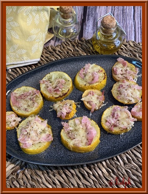 Il me restait une belle courgette jaune du potager de ma petite sœur, alors me voici en cuisine pour tester la recette de ma chère Clarisse. Je les ai réalisés au four avec l’huile de la marinade de mes poivrons marinés, c’est vraiment bien gouteux, Clarisse préfère une cuisson à la poêle. Vous avez donc le choix.