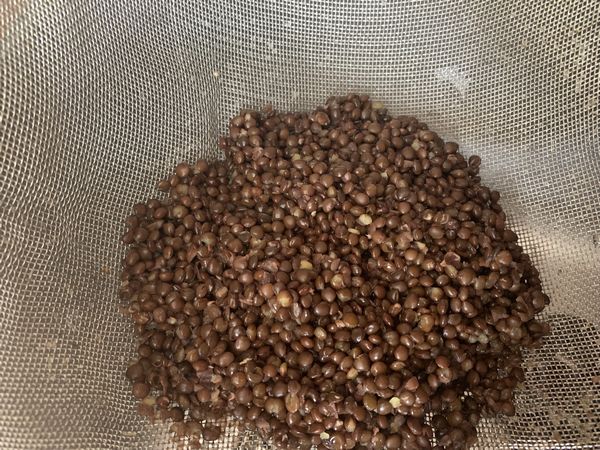 - Rincer les lentilles à l’eau froide. Démarrer la cuisson à l’eau froide, (environ 3 volumes d’eau pour 1 volume de lentilles), après ébullition cuire à feu doux environ un quart d’heure.