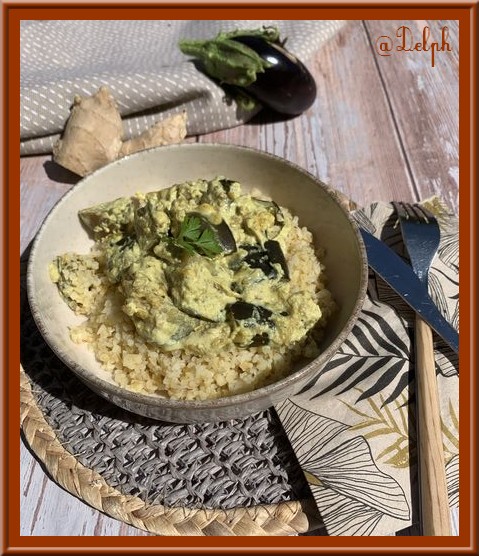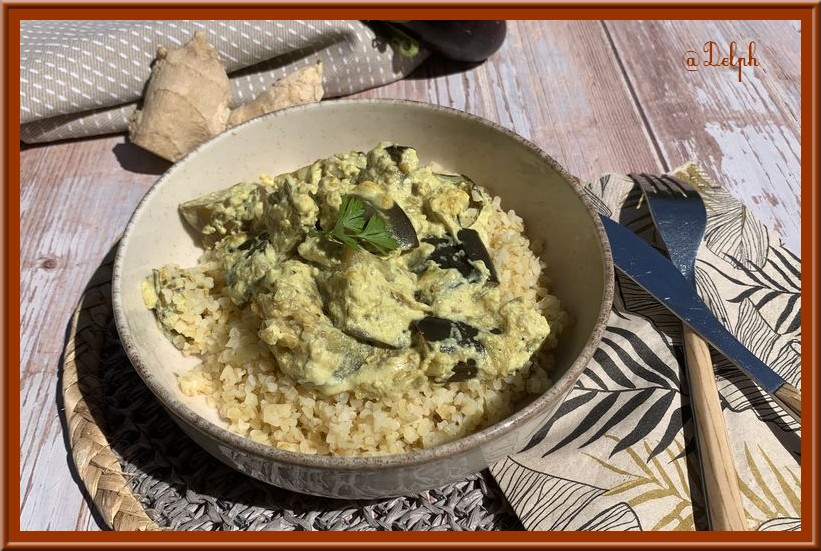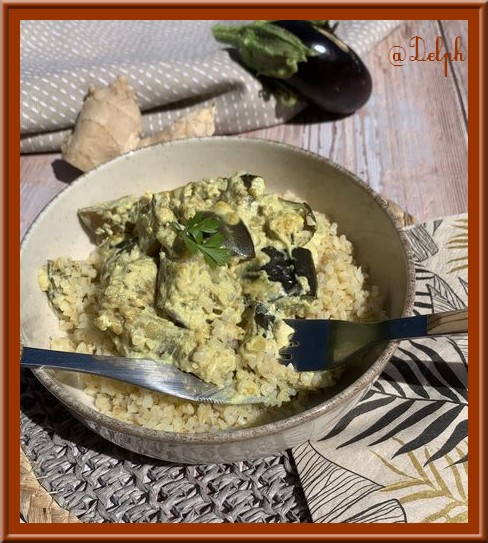 J’avais déjà réalisé un curry d’aubergines mais avec des tomates, voici une nouvelle version avec du lait de coco. Cela le rend bien savoureux et onctueux. J’ai utilisé mes premières aubergines de mon potager; j’en suis vraiment très fière. Cette année elles se développent à vue d’œil, c’est vraiment un bonheur de pouvoir déguster les légumes de son jardin.