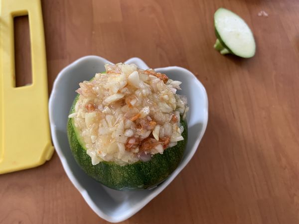 Ces jolies courgettes rondes farcies sont un régal ! Bises