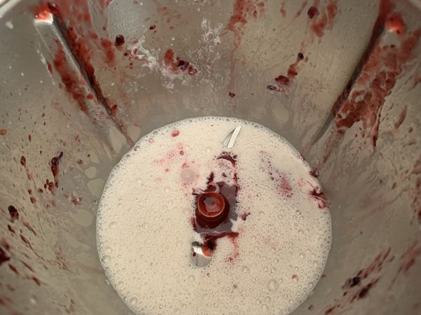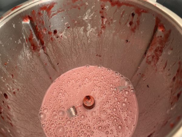 - Mixer les fruits rouges et le sucre, puis filtrer le tout, réserver dans un pichet.