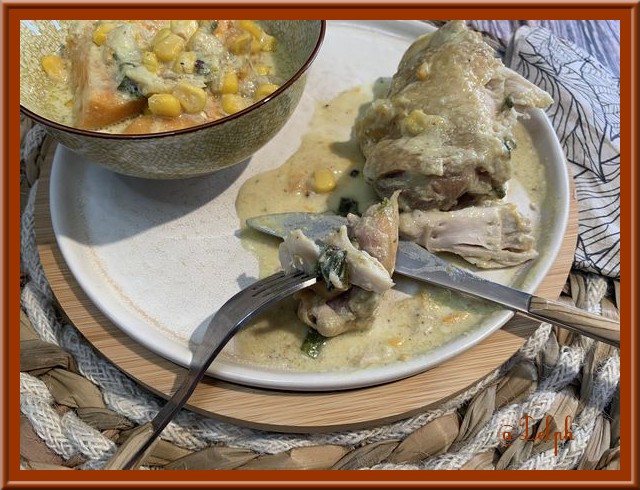 Voici un plat que j’aimerais sans problème. Poulet, patate douce et coco. J’adore et mes papilles voyagent juste en lisant la recette.
