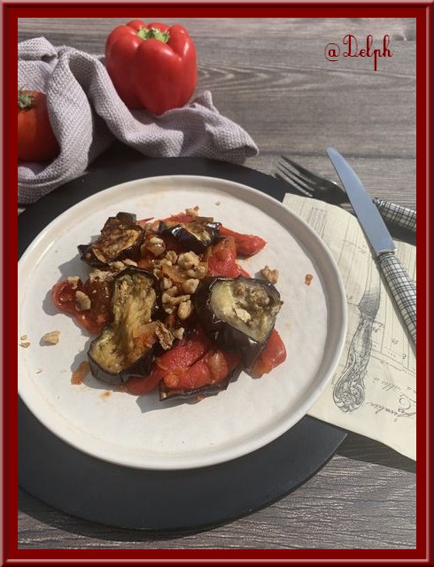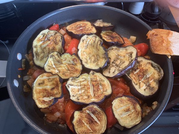- Lorsque vos rondelles d’aubergine et les poivrons sont grillés les sortir.