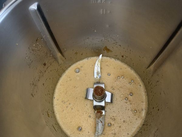 - Mettre dans le bol du Thermomix les œufs et le sucre puis mélanger 1min/vit3, ajouter la farine, la levure et le mélange chocolat et beurre fondu puis mélanger 40sec/vit4.
