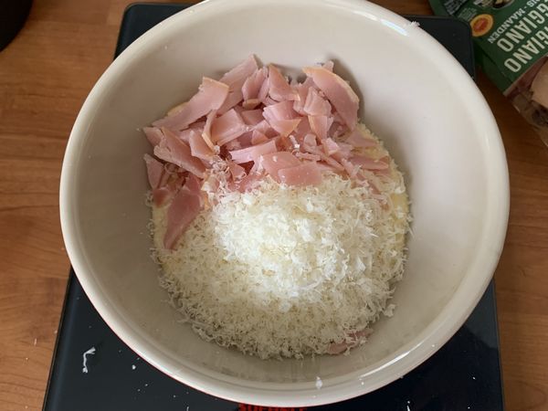 - 30 g de jambon cru coupé finement