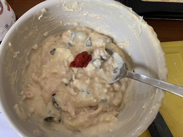 - 5 pétales de tomates séchées coupées en petits morceaux