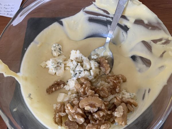 - Mélanger la farine avec la levure, et les incorporer au mélange liquide, bien mélanger le tout, assaisonner à votre goût.