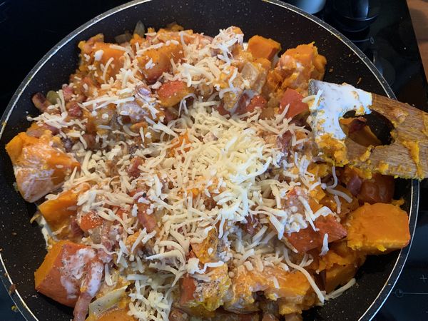 ajouter le potimarron, la crème fraîche et la moitié du Comté. - Assaisonner à votre convenance.