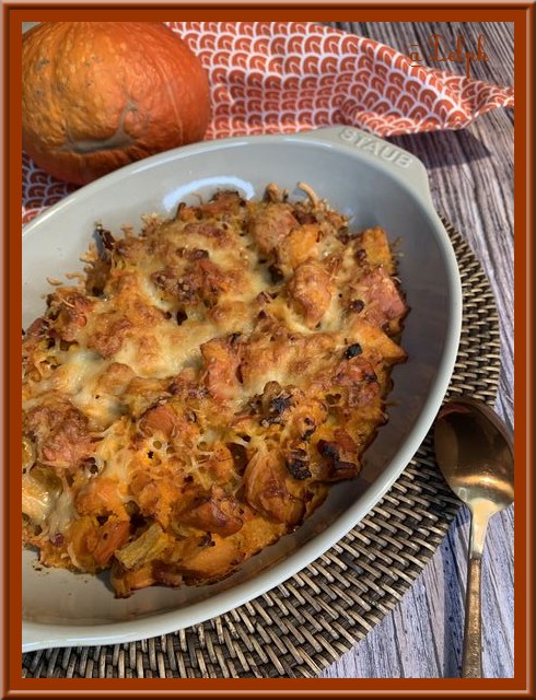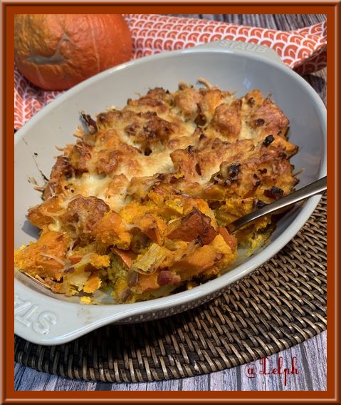 Voici un nouveau gratin, avec du potimarron c’est un régal. J’aime beaucoup le gout de cette courge, vous pouvez retrouver d’autres recettes sur le blog en cliquant sur potimarron.