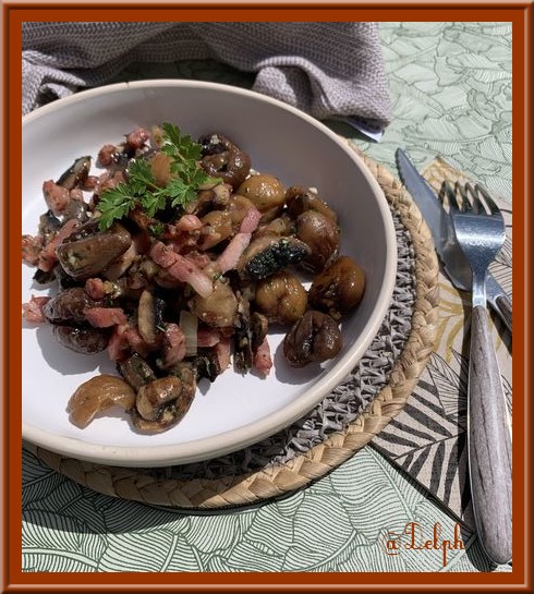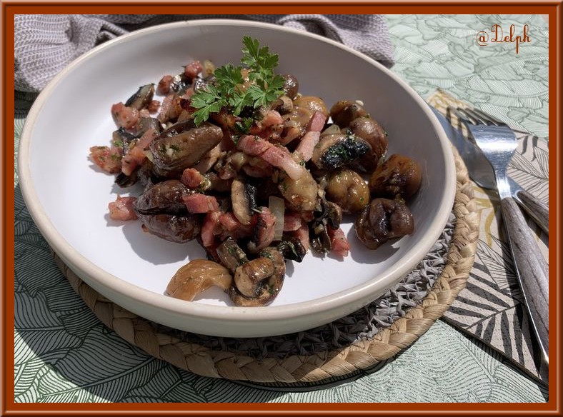 Superbe poêlée , quelle belle idée, châtaignes et champignons, bisous
