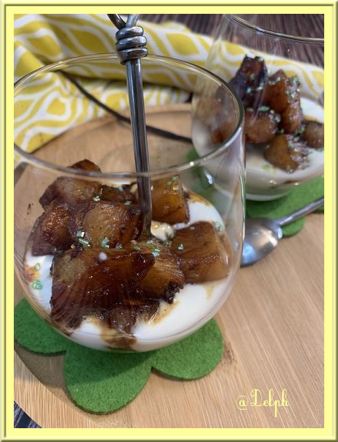 Je ne pense pas souvent à cuisiner l’ananas et pourtant cet ananas caramélisé doit être sublime ! Très jolie verrine ! Bon dimanche, bisous