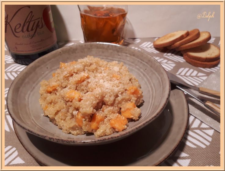 Pour mon plus grand plaisir, Annyvonne est venue tester une deuxième recette. Elle s'est arrêtée sur le risotto de quinoa au cidre et à la patate douce.