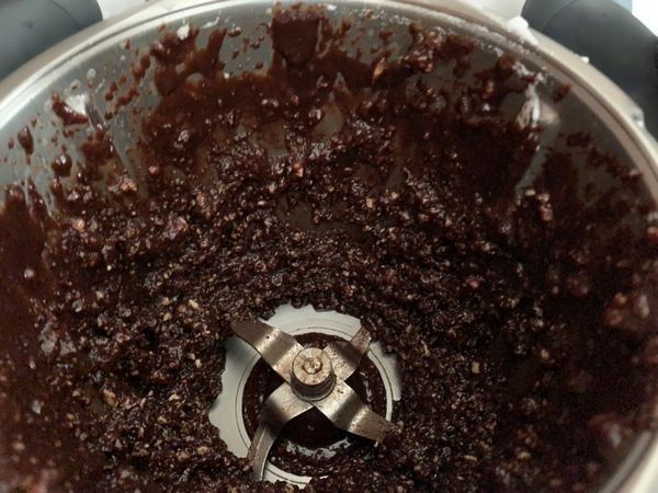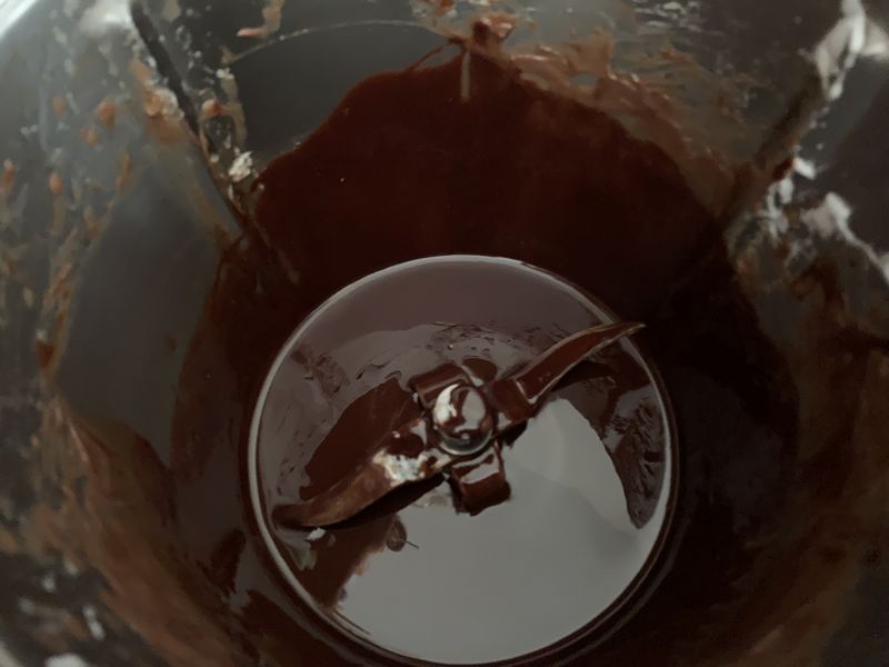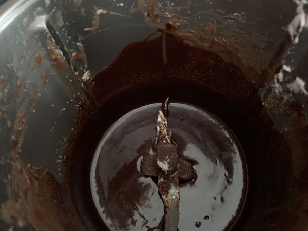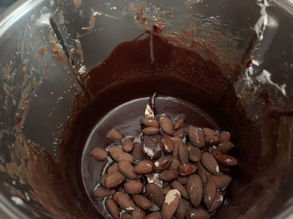 - Verser les amandes torréfiées puis mélanger 20sec/vit 4,5, ajouter la poudre d’amande et mélanger 20sec/vit2.