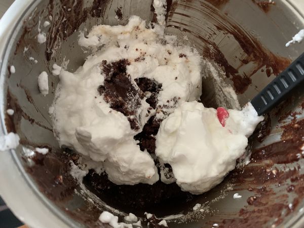 - Incorporer les blancs délicatement à la préparation.
