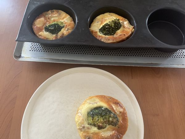Clafoutis aux champignons, brocoli, noix et fromage de chèvre
