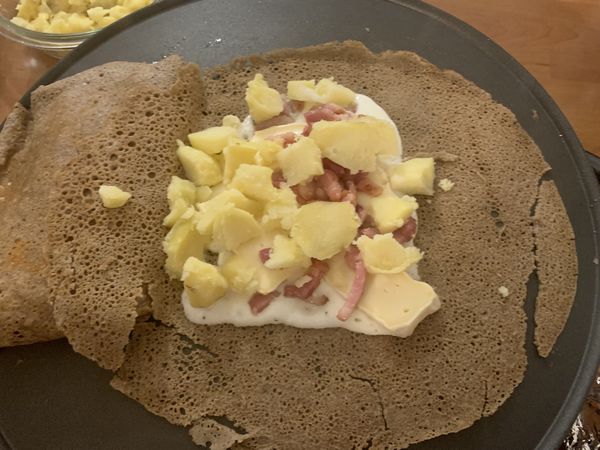 Mes fils adorent la tartiflette alors avec un bon reblochon, que mon fils ainé nous a rapporté de la montagne, nous avons fait ces galettes biens gourmandes.