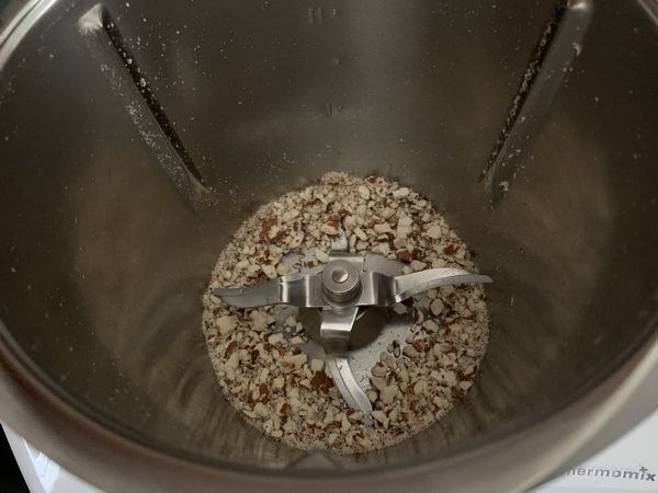 - Concasser grossièrement vos amandes, j’ai mis 5sec/vit6 dans mon Thermomix.