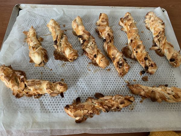 pâte feuilletée bio pur beurre mais sans doute trop fine et pas assez froide(c’est parti en sucette à l’épisode « tournez les bandes de pâte »).