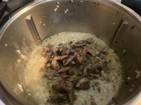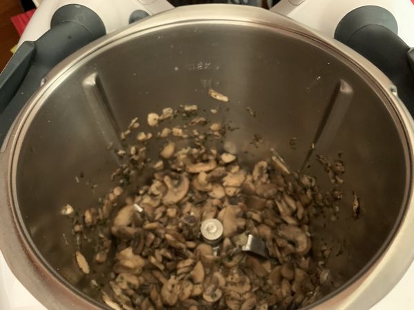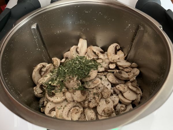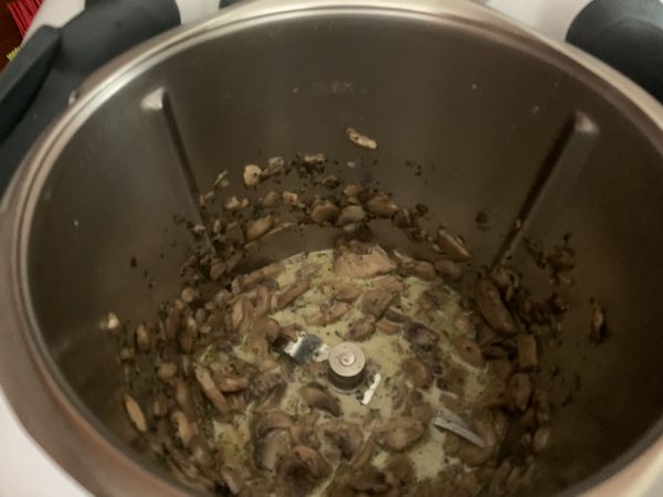 - Reverser les champignons à la crème et faire cuire 3min/100°/couteau inversé/Vit1 toujours avec le panier cuisson.