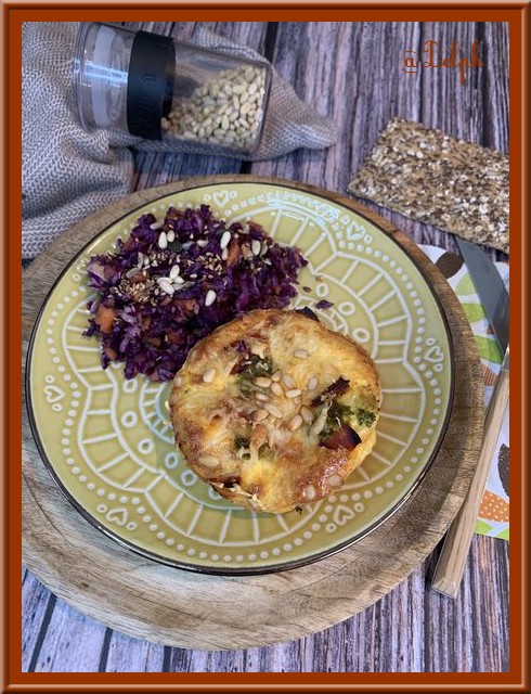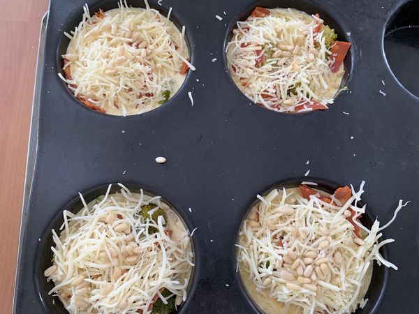 - Disposer les fleurettes de brocoli au fond de vos empreintes, ajouter des lanières de chorizo.
