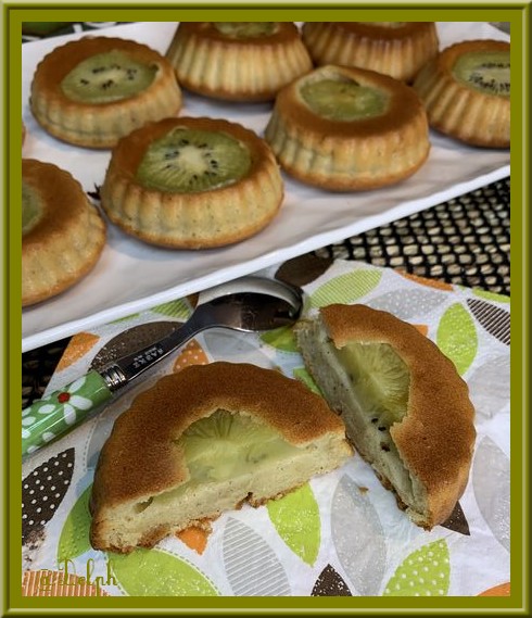 Je mange souvent les kiwis le matin à la petite cuillère, mais rarement dans des pâtisseries et j’ai voulu tester les moelleux que nous propose Christèle, ma conseillère Guy Demarle. Christèle utilise de la mascarpone que j’ai remplacée par un yaourt grec. J’ai été conquise par ces gourmandises.