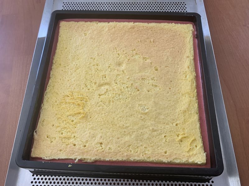 - Mettre au four environ 12 minutes. Attendre que le biscuit soit froid puis démouler et réserver.