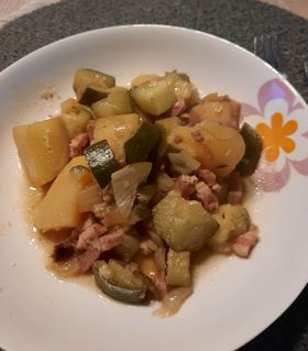 Ma chère Sabrina Deguisne est revenue pour tester les courgettes, pommes de terre et lardons au Cookéo.
