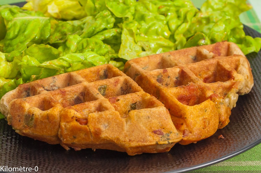 Mon amie Martine s'est inspirée d'une deuxième recette elle a testé les gaufres au brocoli, j'avais mis du jambon et cheddar elle a préféré mettre du chorizo et Comté, une version qui me plait aussi beaucoup.