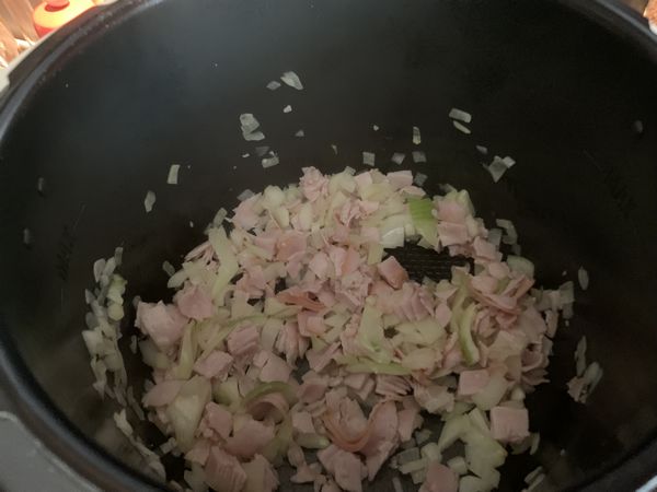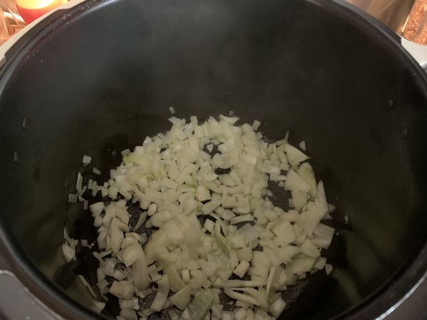 - Mettre votre Cookéo en mode dorer puis verser l’huile et déposer l’oignon ciselé, laisser revenir en mélangeant environ 1 minute.