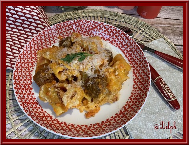 Un nouveau gratin pour mes garçons, et oui pour faire plaisir à mes pâtovores il ne faut pas grand chose. Ici j’ai pris des boulettes de viande de bœuf à l’orientale qui était toute prêtes, cela m’a bien facilité le travail..