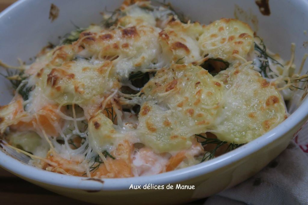 Puis Manue est venue sur mon blog pour s'inspirer du gratin de pommes de terre aux deux saumons, elle a changé de poisson pour utiliser de la truite fumée.