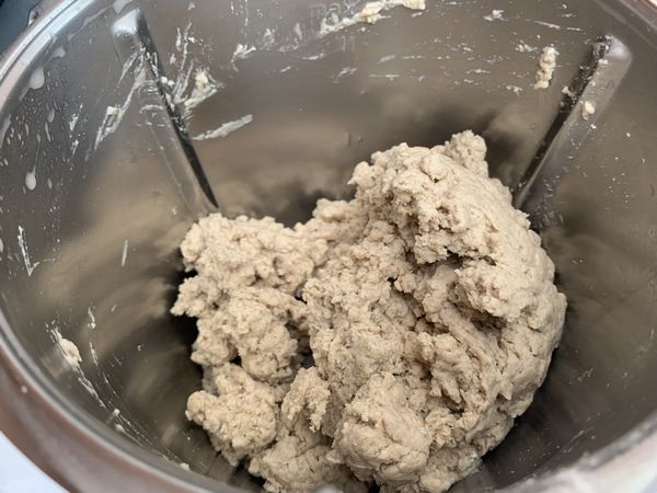 - Ajouter la farine et le sel et pétrir pendant 2 min, verser le mélange de fines herbes puis mélanger 20sec/couteau inversé/Vit3.