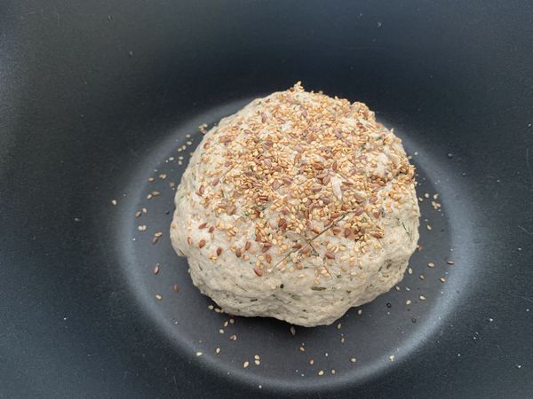 - Grigner le dessus de votre boule avec votre grignette, humidifier légèrement votre pain puis saupoudrer de graines.