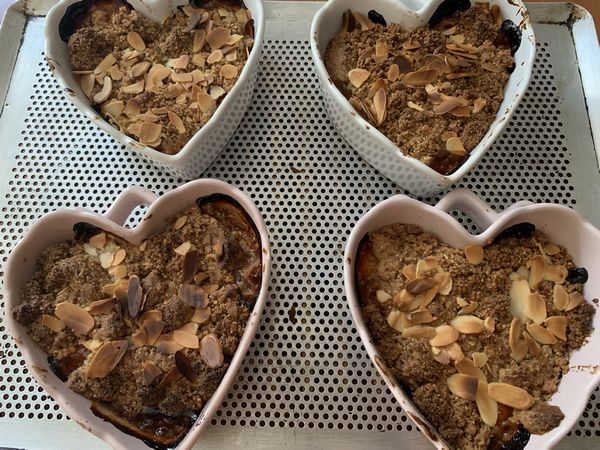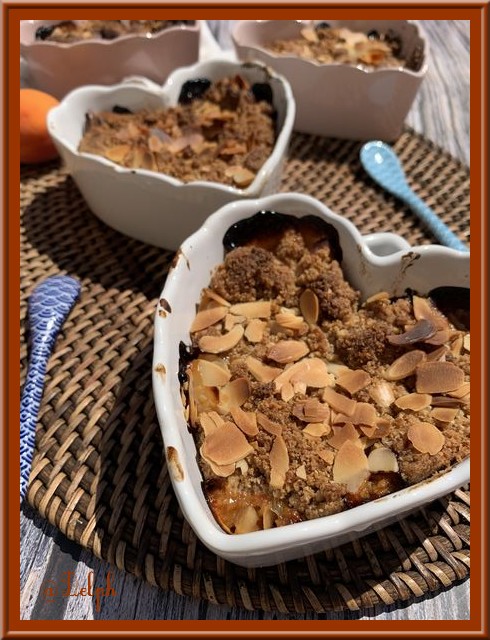un delicieux crumble avec des abricots, un régal pour les papilles, bonne journée