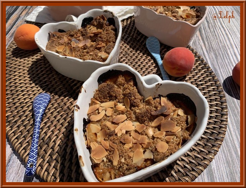 un delicieux crumble avec des abricots, un régal pour les papilles, bonne journée