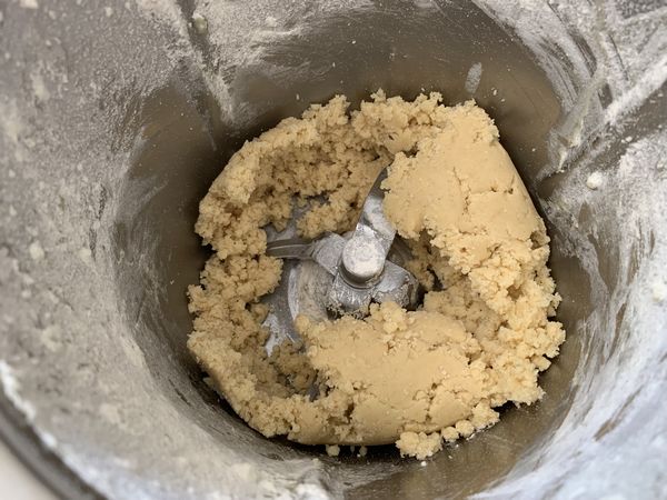 • Mettre dans le Thermomix la farine, la chapelure, le fromage râpé et le beurre mou coupé en dés puis mélanger 8sec/vit6..