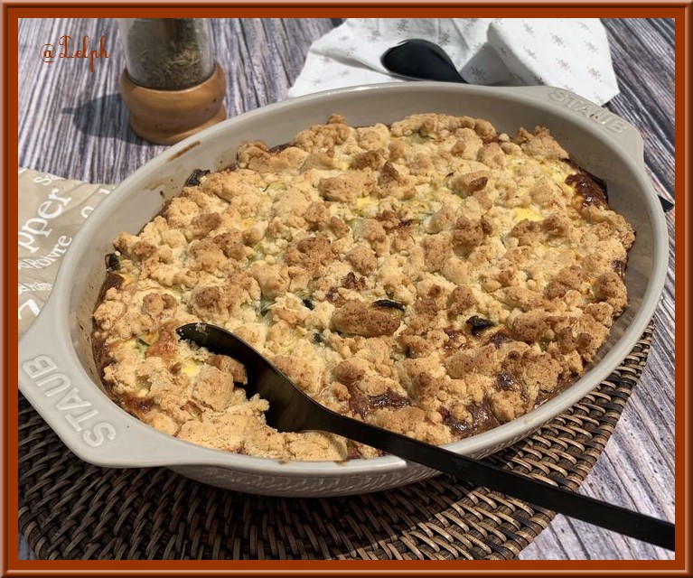 J’aime bien les crumbles en version salée, cela change et cela fait un plat bien complet. C’est chez ma chère Karen que j’ai pioché la recette, nous nous sommes régalés.