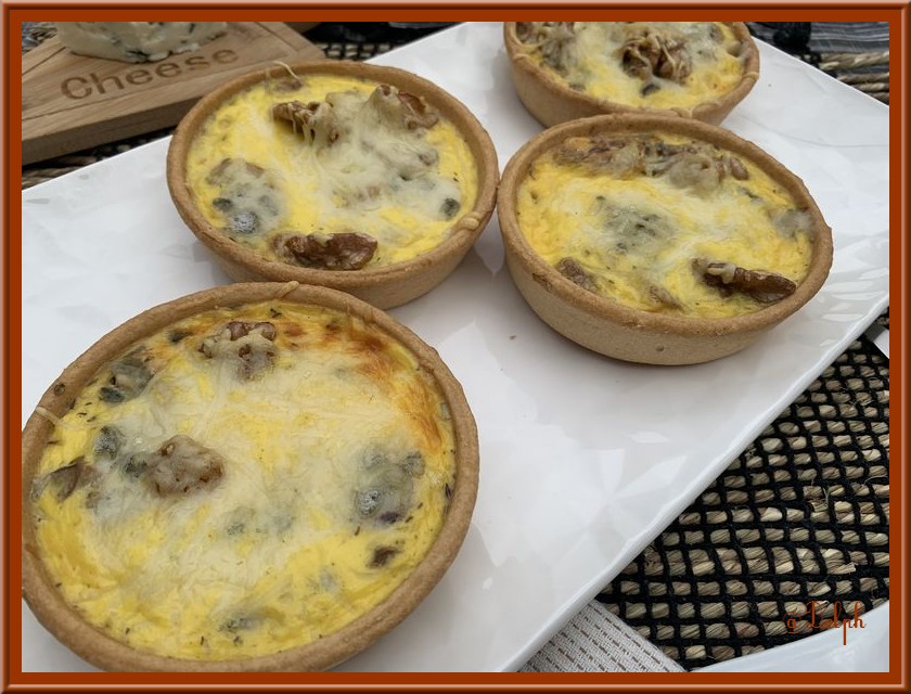 Ma voisine m’a apporté du roquefort de ses vacances, alors je me suis préparée un petit repas gourmand. J’ai associé de bons champignons bruns avec et pour un peu de croquant j’ai mis des noix. J’ai utilisé mes fonds de quiche de prêt à garnir, c’est bien pratique, vous pourrez utiliser une pâte feuilletée ou brisée à la place.