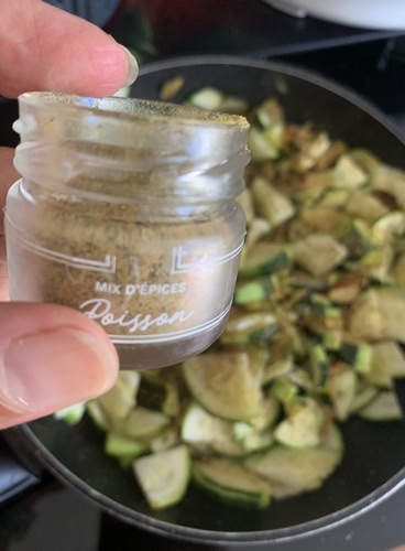 - Dans une sauteuse les faire revenir avec un peu d’huile d’olive, laisser chauffer une dizaine de minutes sur feu moyen, mélanger régulièrement, assaisonner avec du sel, du poivre et les épices à poisson.