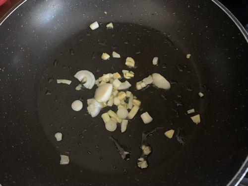 - Dans une poêle, faire revenir, un peu d’huile d’olive avec l’oignon et le gingembre.