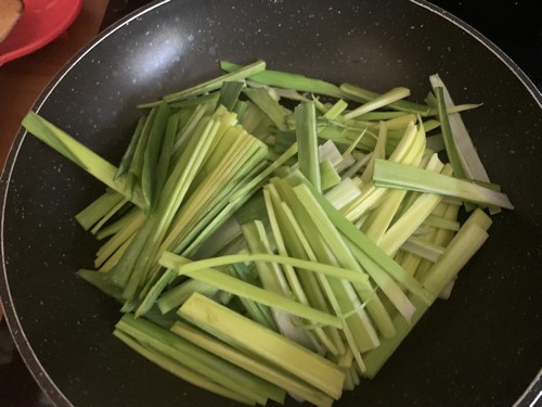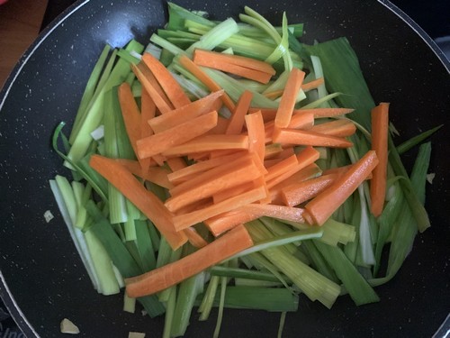 - Laver et détailler votre poireau en fines lanières, faire de même avec votre carotte.