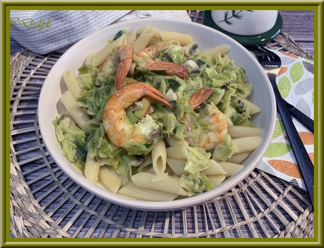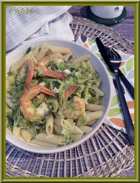 Aujourd’hui, je vous propose un un plat bien savoureux, cette sauce relève parfaitement les poireaux. Et avec les crevettes c’est un pur régal.