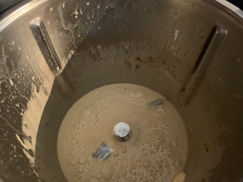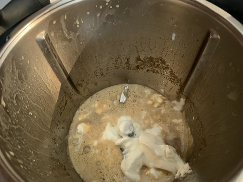 - Ajouter le skyr et la vanille, mélanger 30sec/vit3, incorporer la farine et la compte, mélanger à nouveau 30sec/vit3.