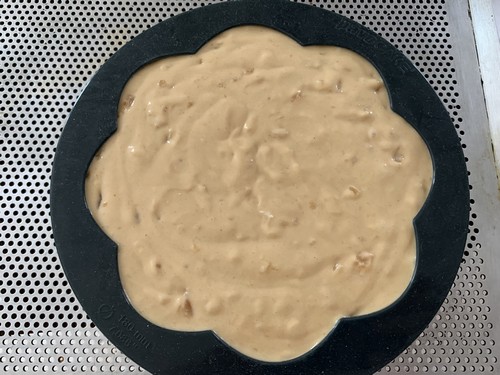 - Verser dans votre moule et enfourner pendant au moins 40 minutes, si votre moule est petit et haut comme le mien ajouter 20 minutes de cuisson.