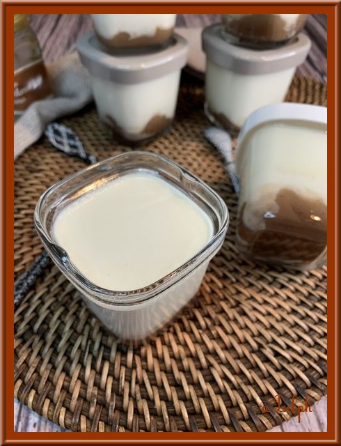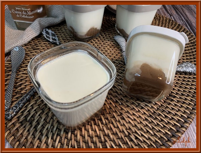Et une nouvelle version de yaourts, cette fois-ci encore très gourmands car ils sont avec de la crème de marron. J’aime tellement ça; qu’il faut que j’en refasse…